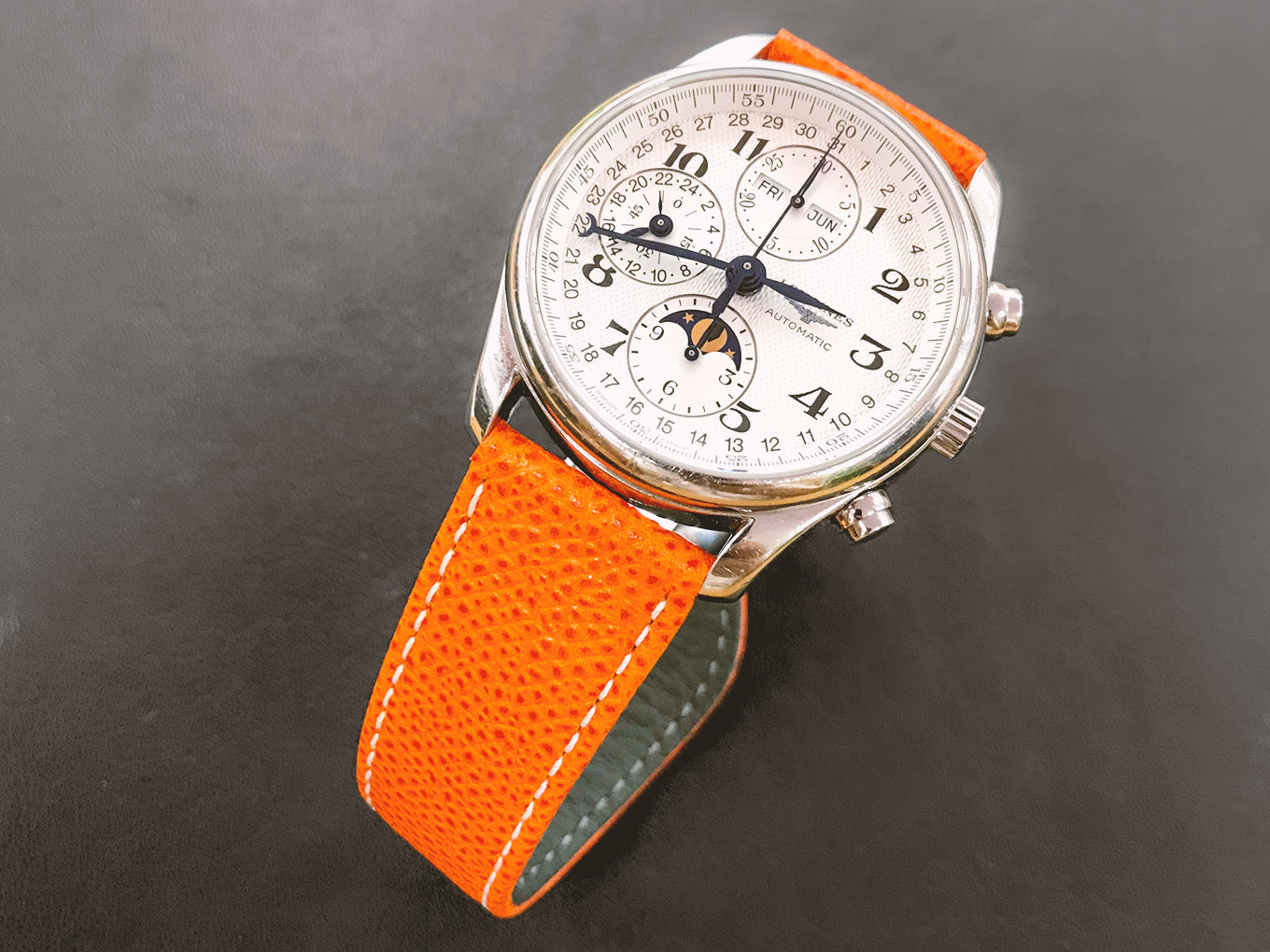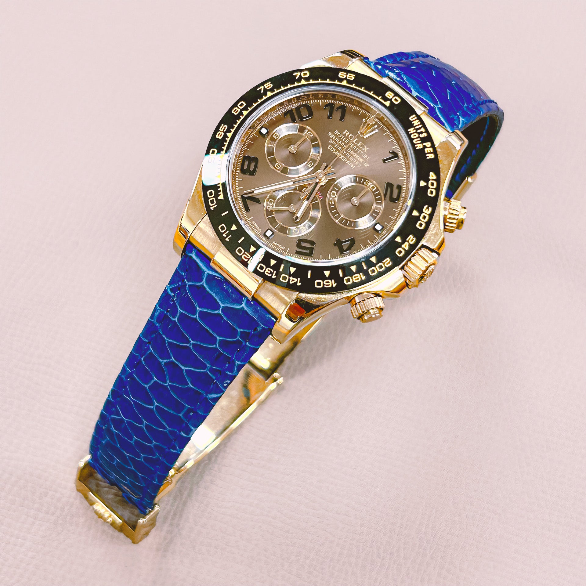 The custom-made watch strap has been a tradition in Geneva since the 1940s. The specific “Geneva rembordé » technique developed at this time gives great resistance to the strap. We strive to perpetuate this know-how in our creations.